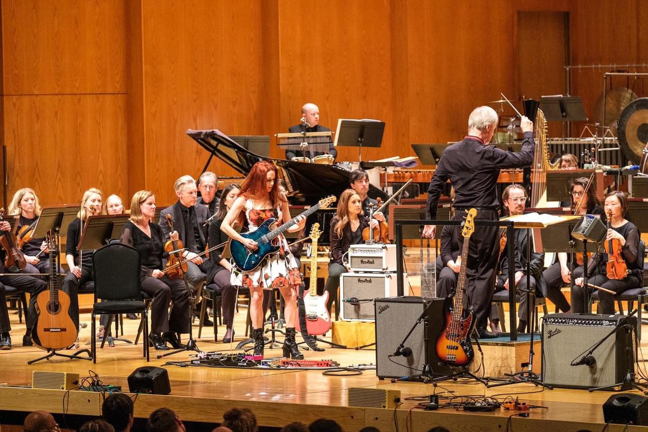 In 2024 with the Utah Symphony, she premiered Steven Mackey’s Aluminum Flowers, a guitar concerto showcasing both classical and electric guitar and an extensive array of extended techniques. She will be back again in May of 2026 for two more performances.
